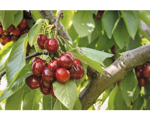 Süßkirschfreunde mit eigenem Garten haben es gut: Sie können sich ganz einfach ihre eigenen Süßkirschen anbauen! Mit diesem Baum ernten Sie Jahr für Jahr eine Vielzahl an schmackhaften, verführerisch dunkelroten Früchten.