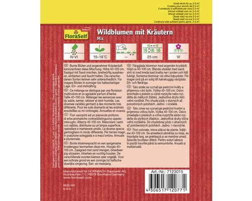 Bunte Blüten und ein angenehmer Kräuterduft kennzeichnen diese Mischung, die eine Höhe von 40 bis 100 cm erreicht. Mischen Sie das Saatgut mit Sand, streuen es breitwürfig aus, harken es ein und halten es feucht. Die verschiedenen Sorten keimen sehr unterschiedlich. Die Mischung eignet sich für magere Böden in sonniger bis halbschattiger Lage.