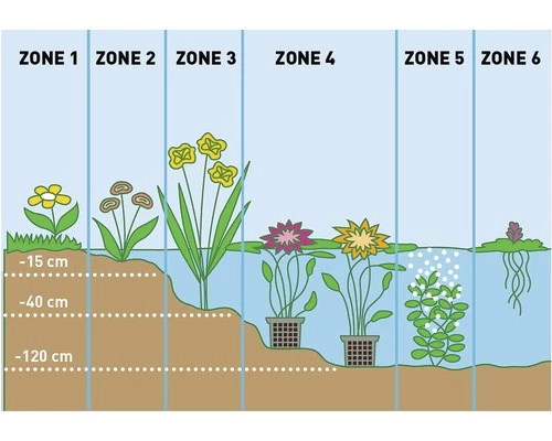 | Wasserpflanzen Bepflanzung | Zone2-Feuchtzone, Zone3-Sumpfzone |