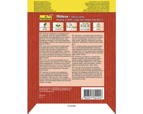 Mit dem Saatband ist es möglich, über die ganze Vegetationsperiode knackige Möhren zu ernten. Ziehen Sie eine ca. 1,5 cm tiefe Rille, legen das Saatband ein, bedecken es mit Erde und halten den Boden während der Keimung immer feucht.