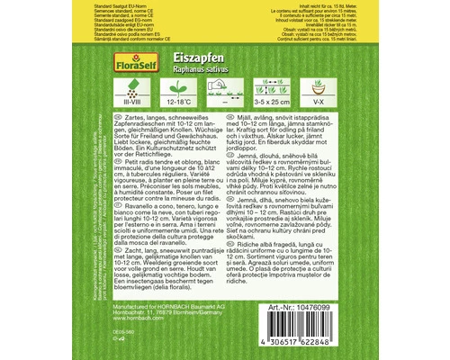 Zartes, 10 – 12 cm langes, schneeweißes Zapfenradieschen für den Frühanbau unter Glas und die gesamte Freilandsaison.